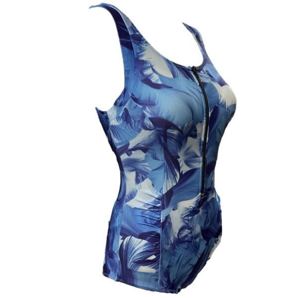 WZ-527708 npフィットネス水着 ファスナー付そで美人 シャーリングワンピース 総裏地 女性用 サイズ/7~15号