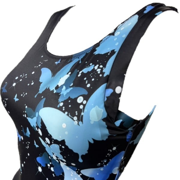 WD-565127 npフィットネス水着 そで美人シェイプワンピース パネル/蝶(MNT) サイズ/17号〜21号